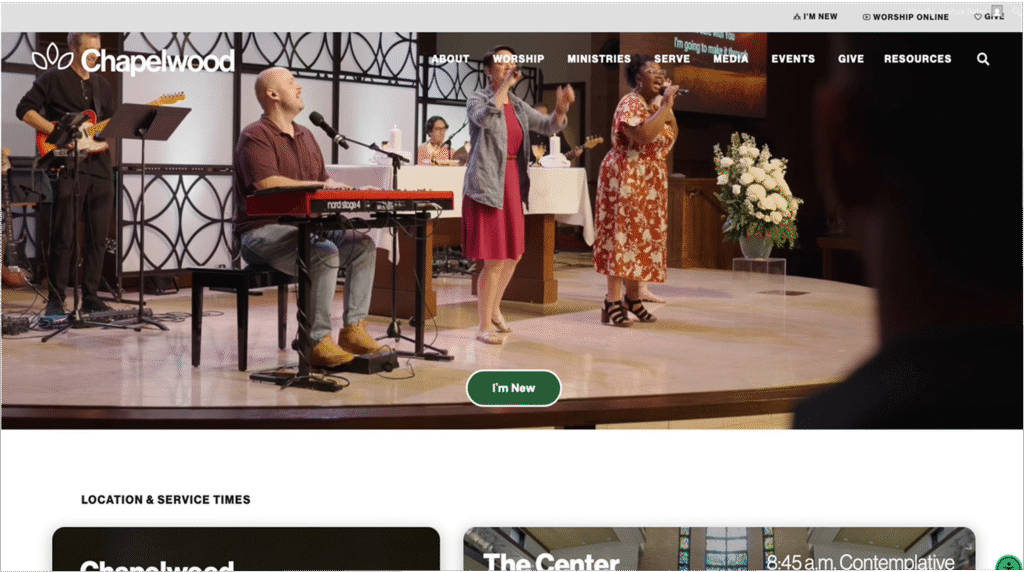 The strategy focused on balancing tradition with growth. Established in 1948, Chapelwood has a strong base of long-time members, many of whom rely on familiarity and ease of use when navigating digital platforms. At the same time, new leadership aimed to attract younger families and create a more modern, inviting entry point through the website. To support both audiences, the design approach prioritized accessibility and simplicity—using clear navigation, intuitive UI patterns, and highly legible content to ensure the experience feels effortless for all users. This balance allowed the website to remain approachable for existing members while becoming more engaging and welcoming to a new generation.
